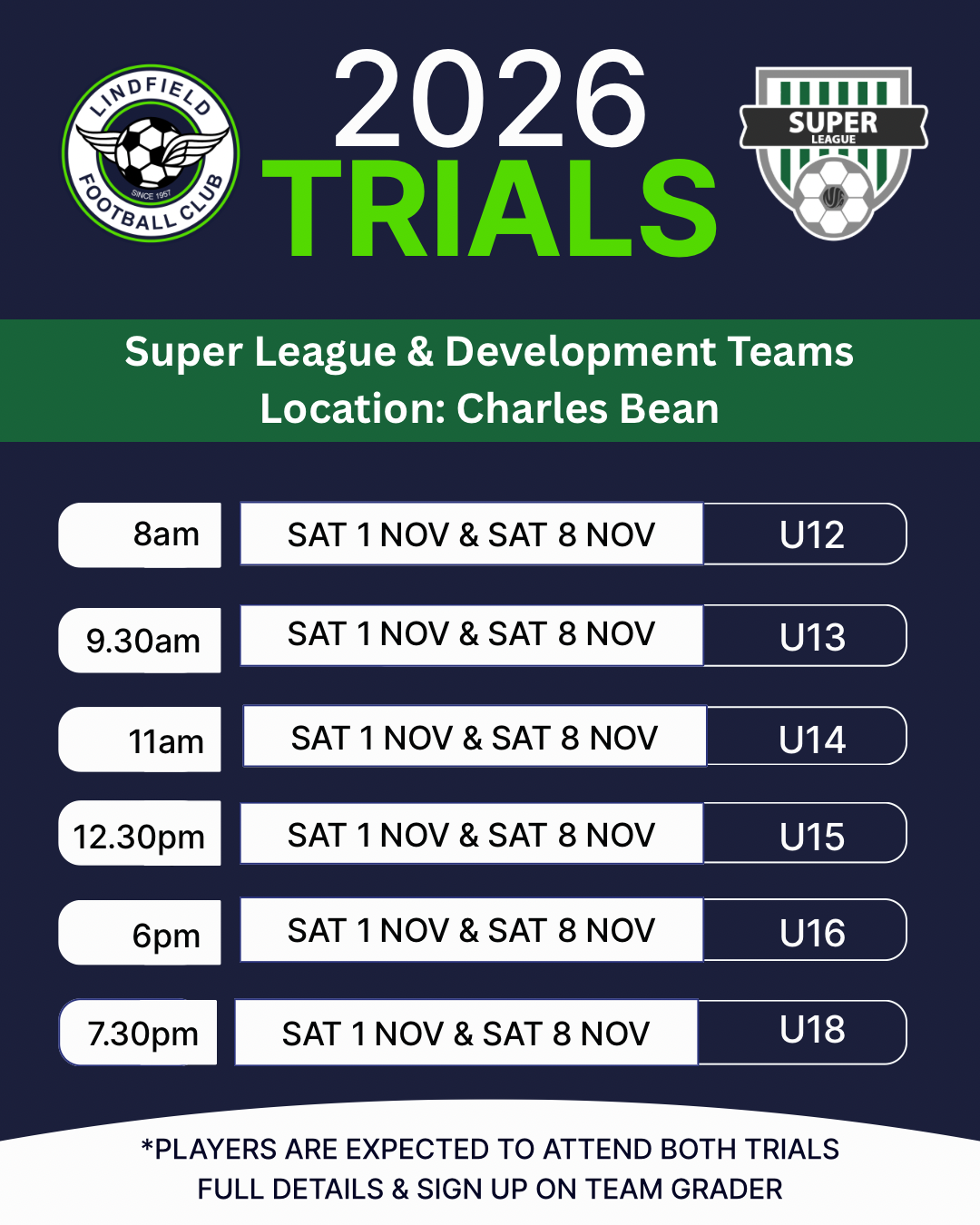 NOTE: For 2026 Lindfield FC will only have one U12 & U13 SL team.